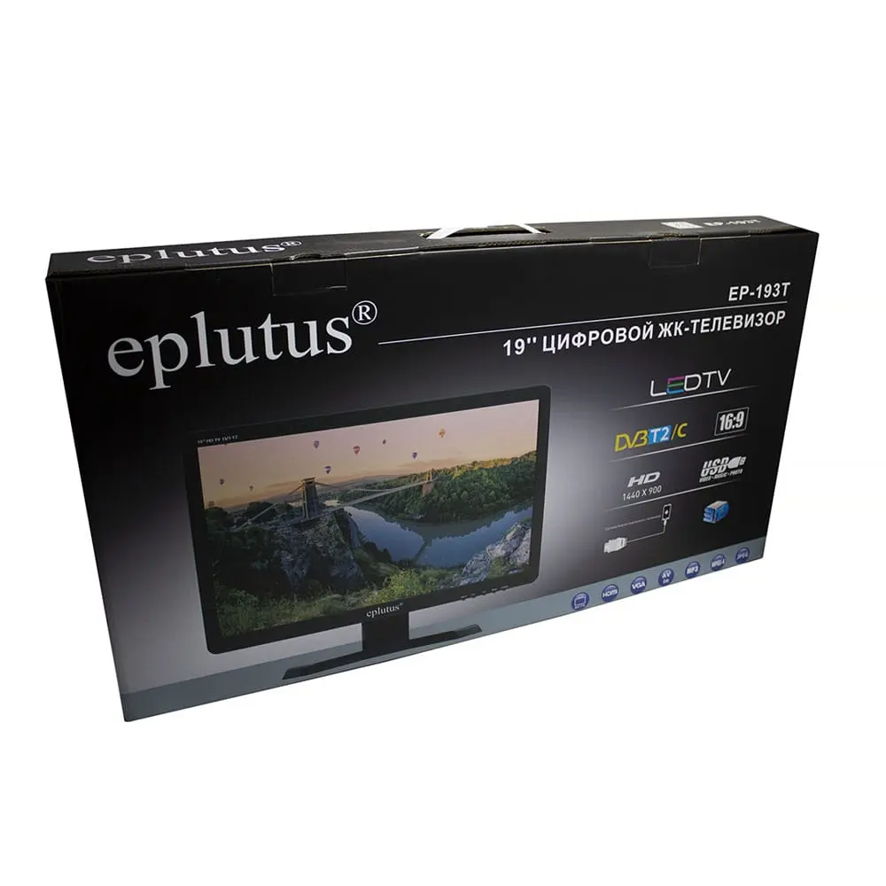 Телевизор со встроенным цифровым тюнером Eplutus EP-193T – это возможность смотреть аналоговые и цифровые каналы в хорошем качестве. Подключите внешние устройства (флеш-накопитель, компьютер или диск) через порт USB и смотрите с друзьями фотографии или подборку любимых фильмов на экране 19 дюймов с разрешением 1440x900. Запишите понравившиеся передачи с помощью функции PVR, чтобы пересмотреть интересные моменты еще раз. С помощью входа HDMI к телевизору можно присоединить игровую приставку. 2 встроенных динамика 2 Вт обеспечивают высокое качество звука.